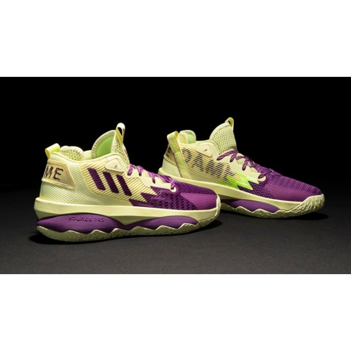 Кроссовки выполнены из текстиля и полимерных материалов. 25% элементов верха минимум на 50% состоят из переработанных материалов. Дизайн в баскетбольном стиле, массивный мягкий бортик. За амортизацию в Dame 8 отвечает Bounce Pro, вместо привычного Lightstrike.
